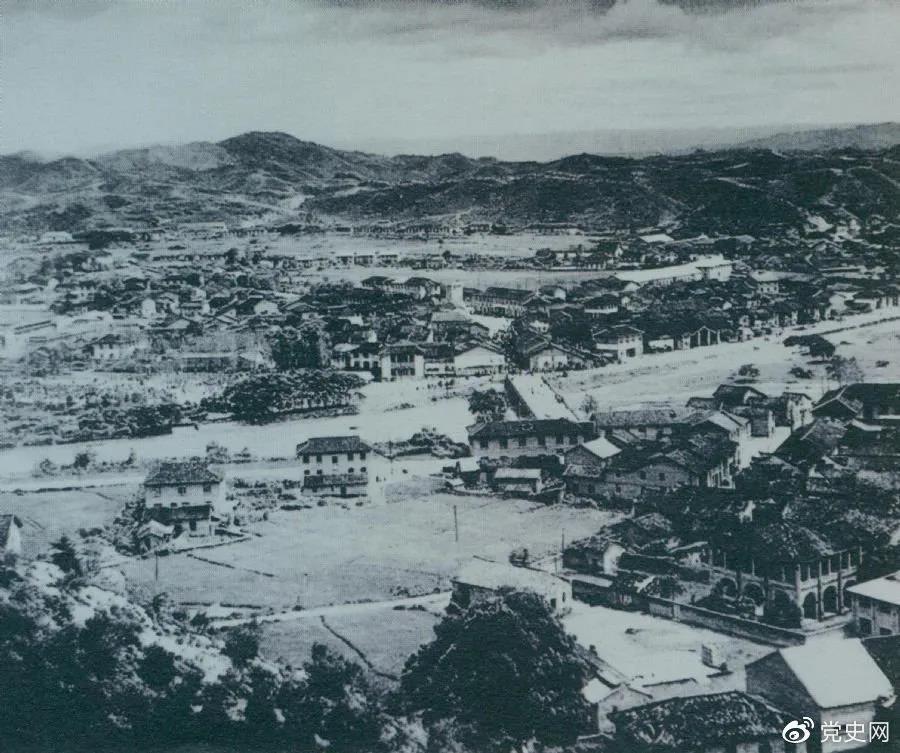1928年4月,朱德等率领南昌起义余部到达井冈山,与毛泽东领导的部队胜利会师。图为会师地点宁冈砻市全景